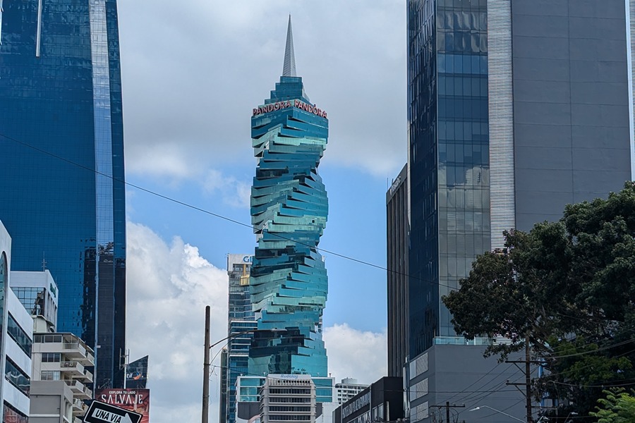 En medio de la arquitectura moderna de Panamá, la Torre de Pandora es un edificio que llama la atención por su forma en espiral, completamente distinta a todo lo que la rodea.