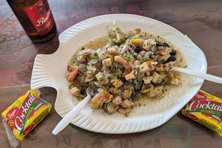 El ceviche panameño tiene su propio estilo: fresco, con bastante limón y un toque picante, y va perfecto acompañado de galletas saladas, patacones o pescado frito.